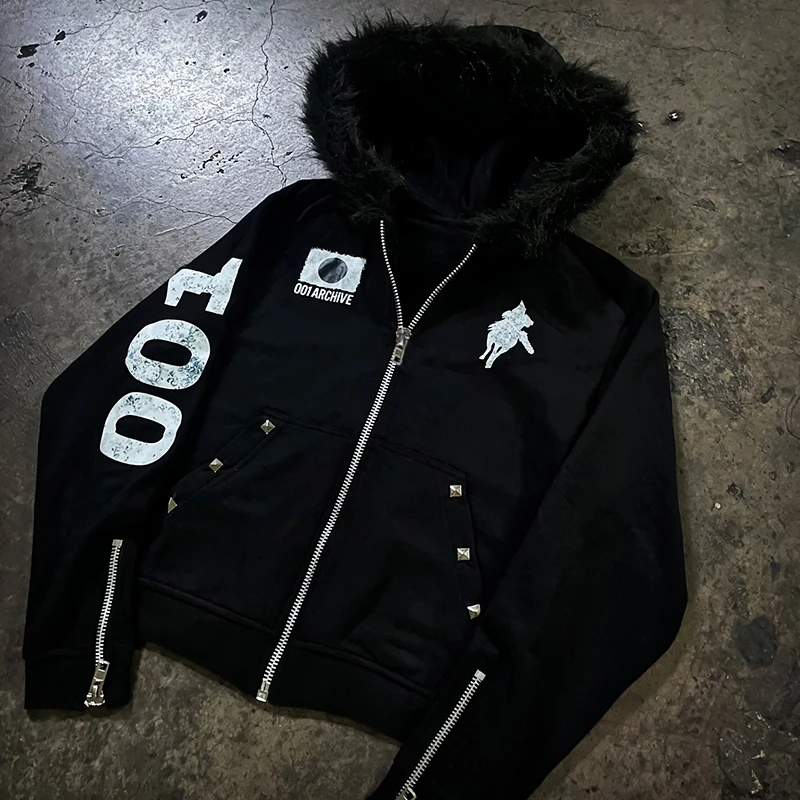 Unleash your inner rebel with the Archive Rider Full-Zip Faux Fur Hoodie. This is more than a jacket; it's a statement piece built for the night. Crafted in a deep, classic black, this hoodie brings together high-impact detailing and rugged style.
