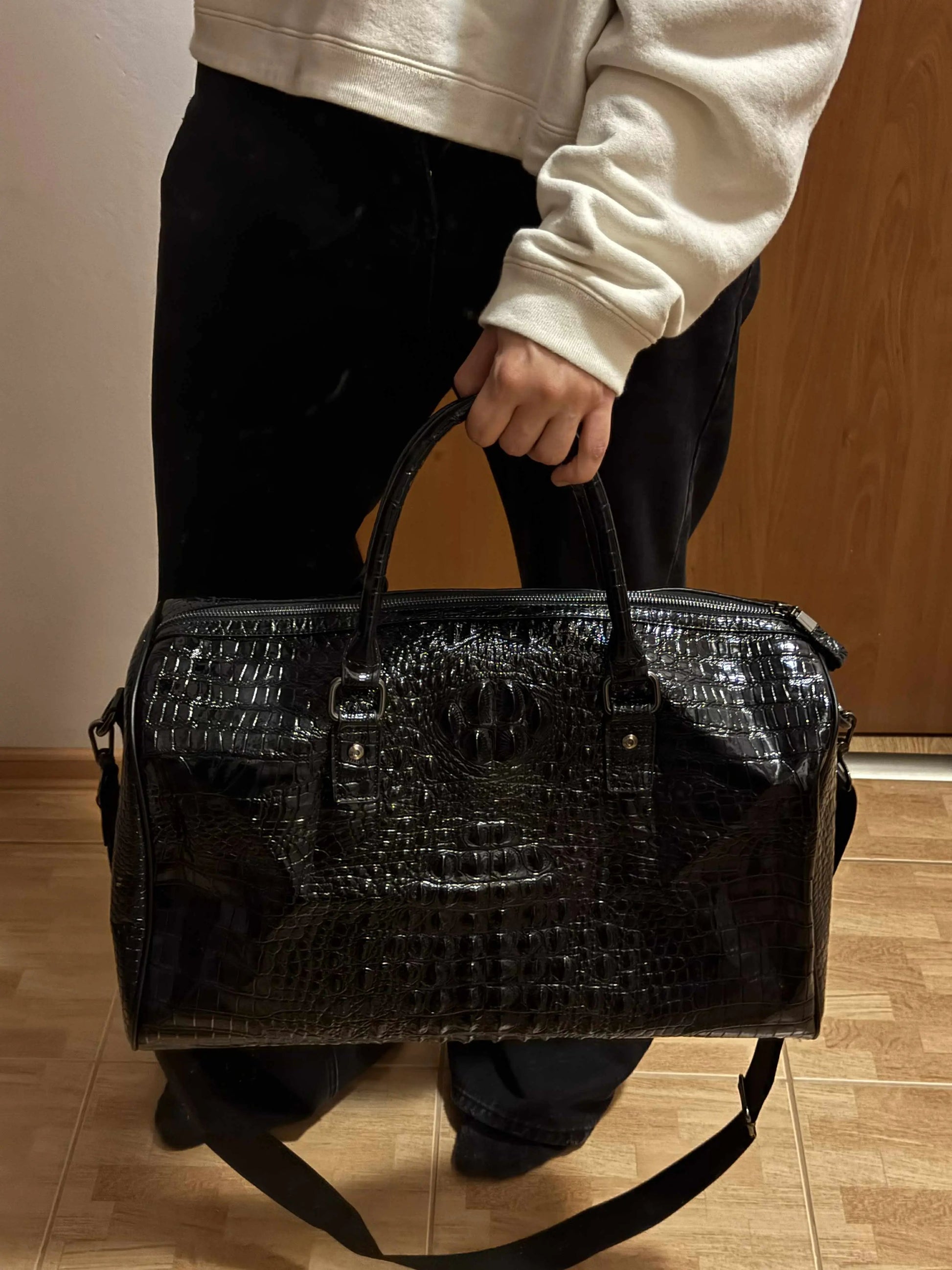 Built Tough. Styled Right. Made from thick, durable leather (or high-grade vegan leather, specify if applicable!), this duffle isn't just about looks – it's built to last. The unique, tactile crocodile-effect pattern feels as good as it looks, catching light and turning heads wherever you go. This isn't your average carry-all; it's an extension of your style.